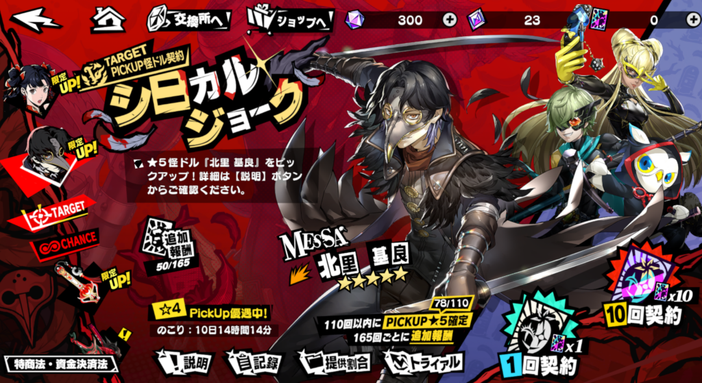 パレス攻略で自在結晶がそこそこ溜まったので、シニカルジョークのPICKUP怪ドル契約に全突っ込み!
