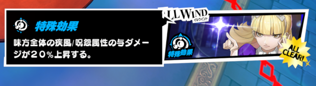 疾風と呪怨属性は他の属性と比べると★5怪ドルが揃っているため、ベルベットルームの試練いるウィンドはALL CLEAR出来ている状況です。